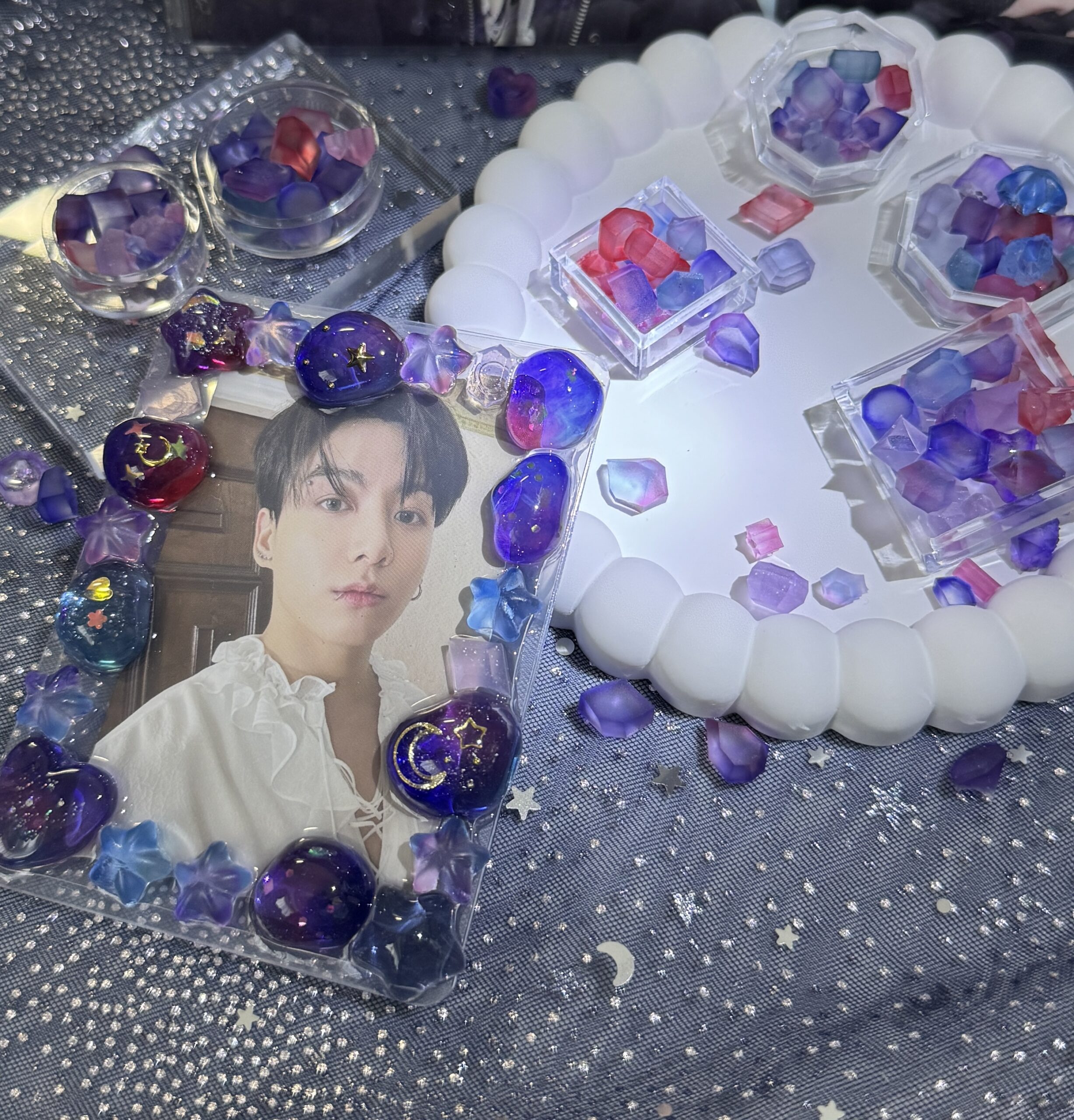 そこで、初めはレジンを使って私の大好きな夜の世界を描いて、デコケースを作ろうと決めたんです。